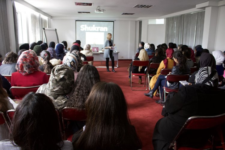 Speaking at a women's conference in Morocco. Shukran means "thank you" in Arabic. This room gave me far more than I gave them.